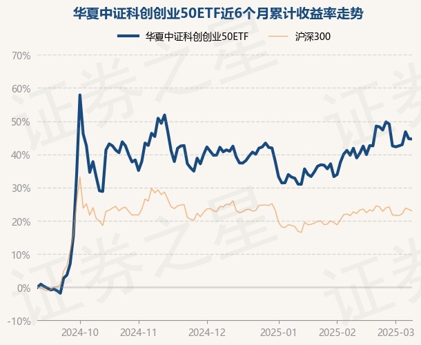 证券之星消息,3月10日,华夏中证科创创业50ETF最新单位净值为0.5961元,累计净值为0.5961元,较前一交易日下跌0.05%。历史数据显示该基金近1个月上涨2.42%,近3个月上涨2.32%,近6个月上涨44.61%,近1年上涨23.21%。该基金近6个月的累计收益率走势如下图: