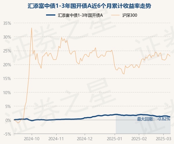 证券之星消息,3月10日,汇添富中债1-3年国开债A最新单位净值为1.0346元,累计净值为1.1888元,较前一交易日下跌0.02%。历史数据显示该基金近1个月下跌0.7%,近3个月下跌0.02%,近6个月上涨1.12%,近1年上涨3.12%。该基金近6个月的累计收益率走势如下图: