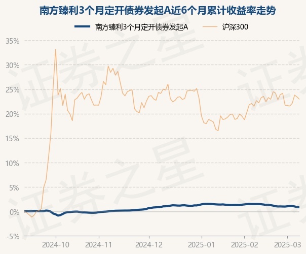证券之星消息,3月10日,南方臻利3个月定开债券发起A最新单位净值为1.0369元,累计净值为1.1255元,较前一交易日下跌0.04%。历史数据显示该基金近1个月下跌0.65%,近3个月下跌0.18%,近6个月上涨0.85%,近1年上涨2.85%。该基金近6个月的累计收益率走势如下图: