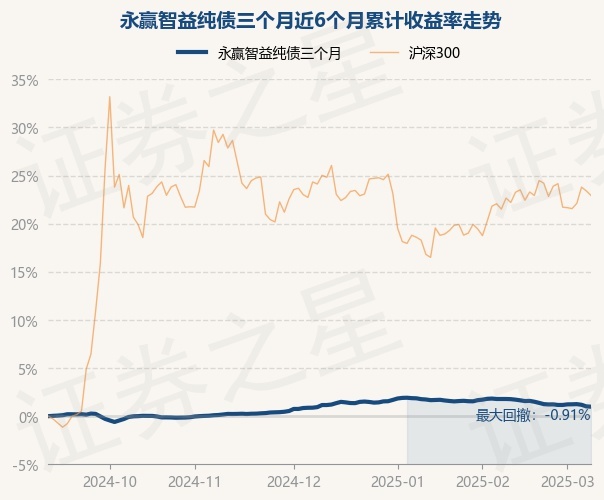 证券之星消息,3月10日,永赢智益纯债三个月最新单位净值为1.1717元,累计净值为1.2126元,较前一交易日下跌0.03%。历史数据显示该基金近1个月下跌0.79%,近3个月下跌0.17%,近6个月上涨0.98%,近1年上涨3.11%。该基金近6个月的累计收益率走势如下图: