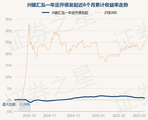证券之星消息,3月10日,兴银汇泓一年定开债发起最新单位净值为1.0259元,累计净值为1.0984元,较前一交易日上涨0.0%。历史数据显示该基金近1个月下跌0.9%,近3个月下跌0.39%,近6个月上涨0.73%,近1年上涨2.31%。该基金近6个月的累计收益率走势如下图: