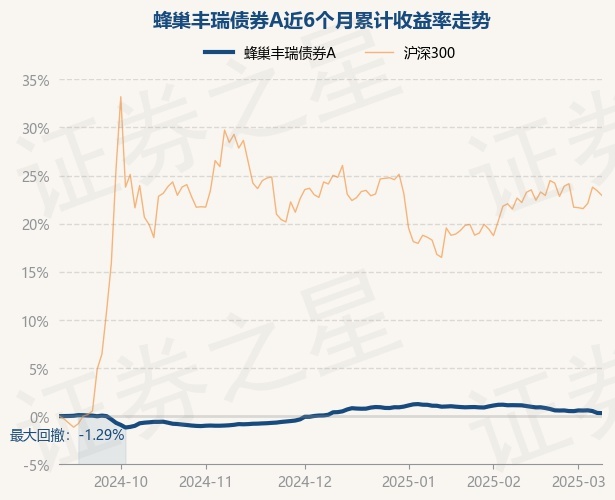 证券之星消息,3月10日,蜂巢丰瑞债券A最新单位净值为1.0803元,累计净值为1.7313元,较前一交易日下跌0.02%。历史数据显示该基金近1个月下跌0.81%,近3个月下跌0.08%,近6个月上涨0.32%,近1年上涨2.6%。该基金近6个月的累计收益率走势如下图: