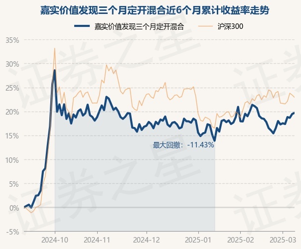 证券之星消息,3月10日,嘉实价值发现三个月定开混合最新单位净值为0.9836元,累计净值为1.0815元,较前一交易日上涨0.19%。历史数据显示该基金近1个月上涨0.59%,近3个月上涨1.17%,近6个月上涨19.69%,近1年上涨10.36%。该基金近6个月的累计收益率走势如下图: