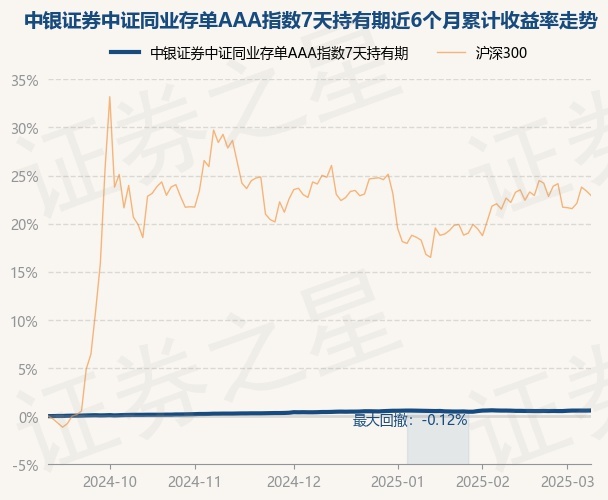 证券之星消息,3月10日,中银证券中证同业存单AAA指数7天持有期最新单位净值为1.0256元,累计净值为1.0256元,较前一交易日上涨0.01%。历史数据显示该基金近1个月上涨0.0%,近3个月上涨0.16%,近6个月上涨0.59%,近1年上涨1.44%。该基金近6个月的累计收益率走势如下图: