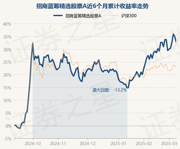 证券之星消息,3月10日,招商蓝筹精选股票A最新单位净值为0.713元,累计净值为0.713元,较前一交易日下跌1.51%。历史数据显示该基金近1个月上涨4.21%,近3个月上涨7.11%,近6个月上涨32.87%,近1年上涨27.78%。该基金近6个月的累计收益率走势如下图: