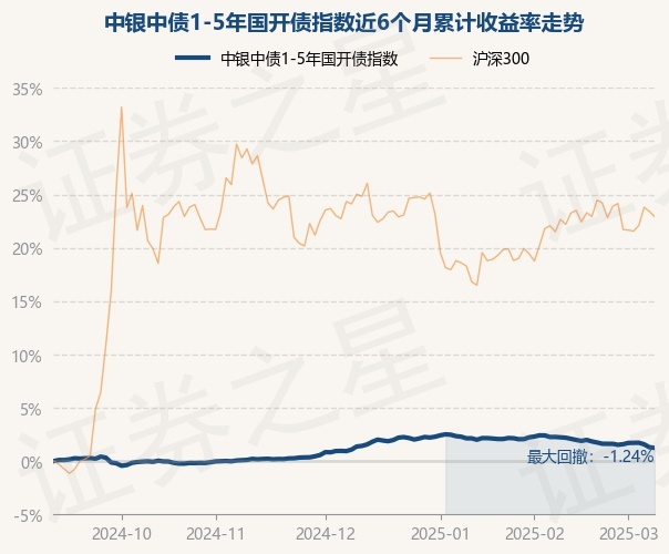 中银中债1-5年国开债指数为指数型-固收基金,根据最新一期基金季报显示,该基金资产配置:无股票类资产,债券占净值比99.77%,现金占净值比0.26%。