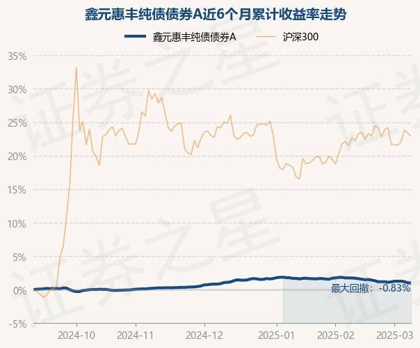 证券之星消息,3月10日,鑫元惠丰纯债债券A最新单位净值为1.0167元,累计净值为1.0801元,较前一交易日下跌0.02%。历史数据显示该基金近1个月下跌0.73%,近3个月下跌0.05%,近6个月上涨1.01%,近1年上涨3.29%。该基金近6个月的累计收益率走势如下图: