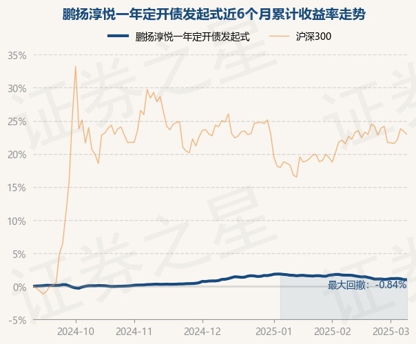 鹏扬淳悦一年定开债发起式为债券型-长债基金,根据最新一期基金季报显示,该基金资产配置:无股票类资产,债券占净值比123.85%,现金占净值比0.01%。