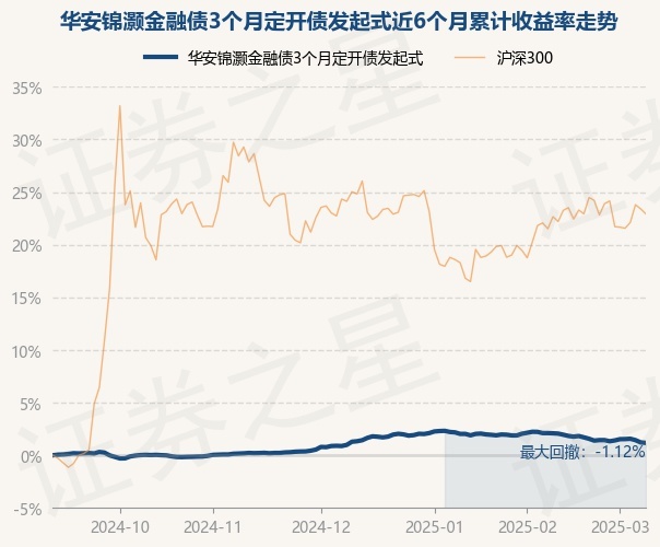 证券之星消息,3月10日,华安锦灏金融债3个月定开债发起式最新单位净值为1.0316元,累计净值为1.1206元,较前一交易日下跌0.05%。历史数据显示该基金近1个月下跌0.91%,近3个月下跌0.11%,近6个月上涨1.18%,近1年上涨3.27%。该基金近6个月的累计收益率走势如下图: