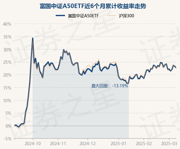 证券之星消息,3月10日,富国中证A50ETF最新单位净值为1.1372元,累计净值为1.1372元,较前一交易日下跌0.45%。历史数据显示该基金近1个月上涨0.7%,近3个月下跌1.16%,近6个月上涨22.75%,近1年上涨13.72%。该基金近6个月的累计收益率走势如下图: