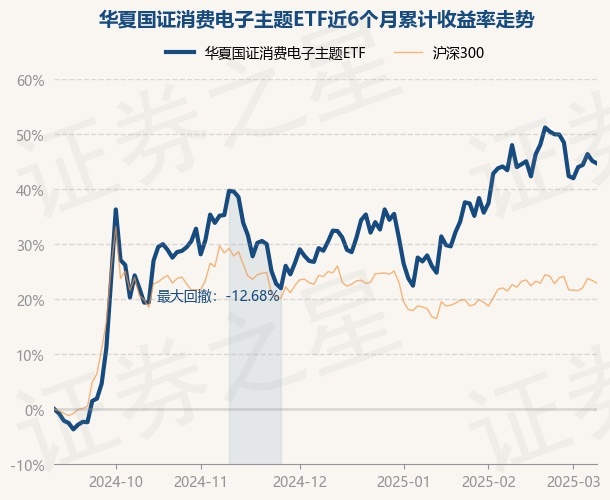 证券之星消息,3月10日,华夏国证消费电子主题ETF最新单位净值为0.8876元,累计净值为0.8876元,较前一交易日下跌0.31%。历史数据显示该基金近1个月上涨0.38%,近3个月上涨10.87%,近6个月上涨44.7%,近1年上涨41.27%。该基金近6个月的累计收益率走势如下图: