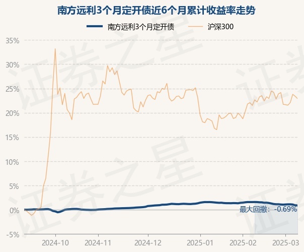 证券之星消息,3月10日,南方远利3个月定开债最新单位净值为1.103元,累计净值为1.173元,较前一交易日下跌0.04%。历史数据显示该基金近1个月下跌0.68%,近3个月下跌0.14%,近6个月上涨0.89%,近1年上涨2.56%。该基金近6个月的累计收益率走势如下图: