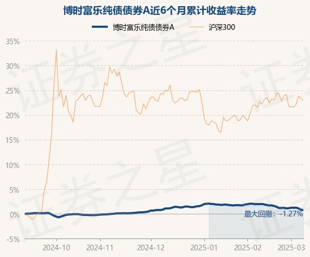 证券之星消息,3月10日,博时富乐纯债债券A最新单位净值为1.0768元,累计净值为1.2072元,较前一交易日下跌0.06%。历史数据显示该基金近1个月下跌1.16%,近3个月下跌0.31%,近6个月上涨0.79%,近1年上涨2.57%。该基金近6个月的累计收益率走势如下图: