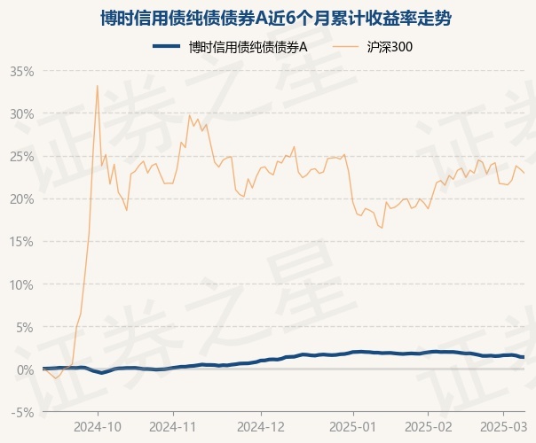 证券之星消息,3月10日,博时信用债纯债债券A最新单位净值为1.1207元,累计净值为1.6853元,较前一交易日下跌0.03%。历史数据显示该基金近1个月下跌0.59%,近3个月上涨0.0%,近6个月上涨1.36%,近1年上涨3.24%。该基金近6个月的累计收益率走势如下图: