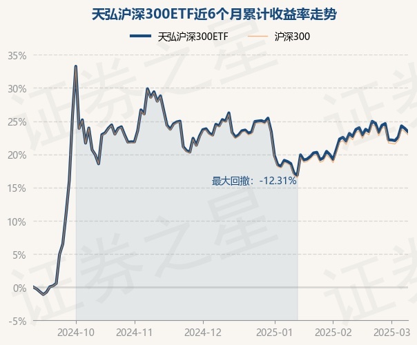 证券之星消息,3月10日,天弘沪深300ETF最新单位净值为1.1027元,累计净值为1.1027元,较前一交易日下跌0.4%。历史数据显示该基金近1个月上涨0.69%,近3个月下跌1.45%,近6个月上涨23.41%,近1年上涨13.82%。该基金近6个月的累计收益率走势如下图: