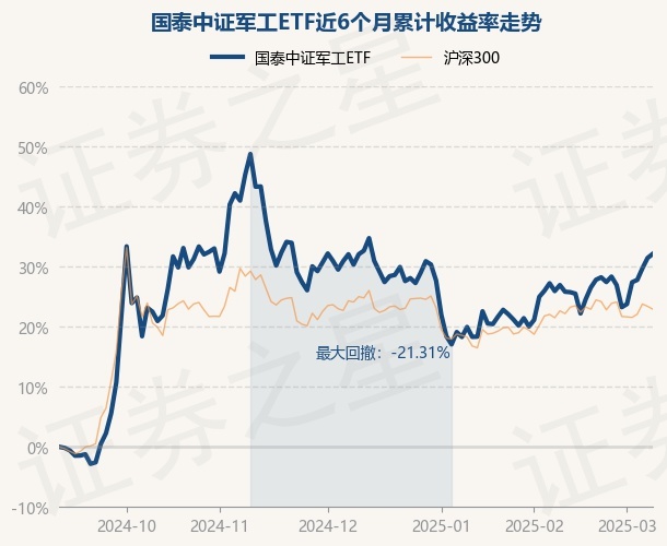 证券之星消息,3月10日,国泰中证军工ETF最新单位净值为1.078元,累计净值为1.078元,较前一交易日上涨0.51%。历史数据显示该基金近1个月上涨3.84%,近3个月上涨0.05%,近6个月上涨32.14%,近1年上涨20.77%。该基金近6个月的累计收益率走势如下图: