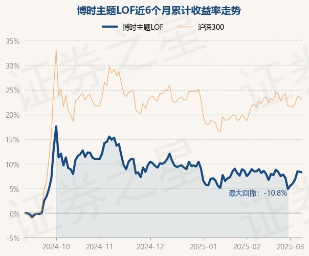 证券之星消息,3月10日,博时主题LOF最新单位净值为0.997元,累计净值为5.692元,较前一交易日下跌0.1%。历史数据显示该基金近1个月下跌0.2%,近3个月下跌1.87%,近6个月上涨8.25%,近1年上涨0.3%。该基金近6个月的累计收益率走势如下图: