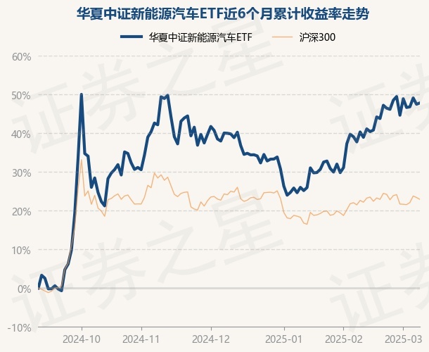 证券之星消息,3月10日,华夏中证新能源汽车ETF最新单位净值为1.3483元,累计净值为1.3483元,较前一交易日上涨0.22%。历史数据显示该基金近1个月上涨6.27%,近3个月上涨5.72%,近6个月上涨47.82%,近1年上涨25.65%。该基金近6个月的累计收益率走势如下图: