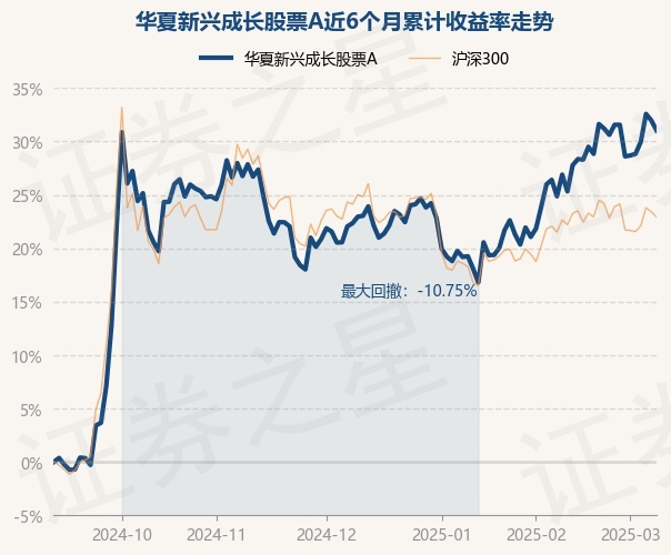 证券之星消息,3月10日,华夏新兴成长股票A最新单位净值为0.7752元,累计净值为0.7752元,较前一交易日下跌0.7%。历史数据显示该基金近1个月上涨3.66%,近3个月上涨6.57%,近6个月上涨31.03%,近1年上涨23.03%。该基金近6个月的累计收益率走势如下图: