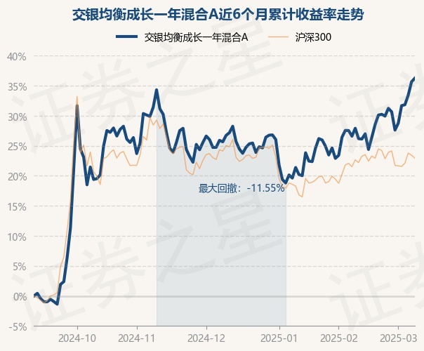 证券之星消息,3月10日,交银均衡成长一年混合A最新单位净值为0.889元,累计净值为0.952元,较前一交易日上涨0.44%。历史数据显示该基金近1个月上涨6.84%,近3个月上涨7.51%,近6个月上涨36.25%,近1年上涨14.18%。该基金近6个月的累计收益率走势如下图: