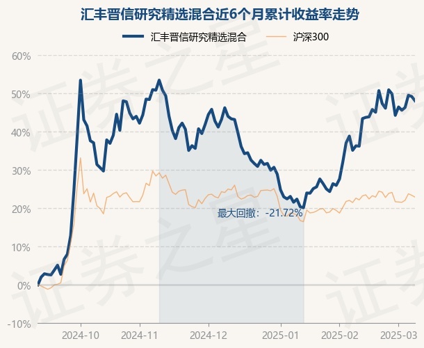 证券之星消息,3月10日,汇丰晋信研究精选混合最新单位净值为0.761元,累计净值为0.761元,较前一交易日下跌0.74%。历史数据显示该基金近1个月上涨6.66%,近3个月上涨2.85%,近6个月上涨48.11%,近1年上涨37.96%。该基金近6个月的累计收益率走势如下图: