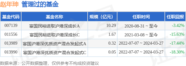 赵年珅先生:中国,研究生、硕士,自2014年07月至2017年06月任富达国际(香港)有限公司上海代表处投资部股票分析师;2017年06月加入富国基金管理有限公司,任海外权益投资部高级QDII研究员。2022年7月7日至2024年3月27日任富国沪港深优质资产混合型发起式证券投资基金基金经理。