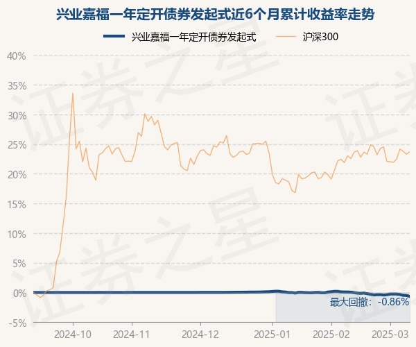证券之星消息,3月11日,兴业嘉福一年定开债券发起式最新单位净值为1.0596元,累计净值为1.1582元,较前一交易日下跌0.15%。历史数据显示该基金近1个月下跌0.74%,近3个月下跌0.67%,近6个月下跌0.65%,近1年上涨5.04%。该基金近6个月的累计收益率走势如下图: