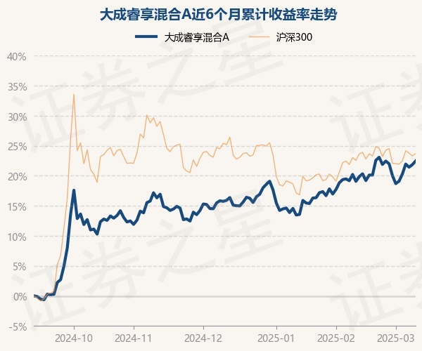 证券之星消息,3月11日,大成睿享混合A最新单位净值为1.6079元,累计净值为1.8222元,较前一交易日上涨0.5%。历史数据显示该基金近1个月上涨2.75%,近3个月上涨5.65%,近6个月上涨22.46%,近1年上涨19.17%。该基金近6个月的累计收益率走势如下图: