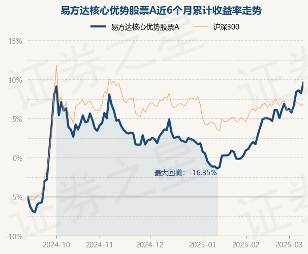 证券之星消息,3月11日,易方达核心优势股票A最新单位净值为0.7757元,累计净值为0.7757元,较前一交易日上涨2.11%。历史数据显示该基金近1个月上涨13.86%,近3个月上涨10.34%,近6个月上涨29.15%,近1年上涨12.68%。该基金近6个月的累计收益率走势如下图: