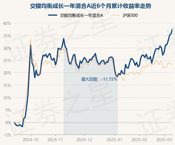 证券之星消息,3月11日,交银均衡成长一年混合A最新单位净值为0.9008元,累计净值为0.9638元,较前一交易日上涨1.33%。历史数据显示该基金近1个月上涨9.06%,近3个月上涨8.56%,近6个月上涨37.46%,近1年上涨14.53%。该基金近6个月的累计收益率走势如下图: