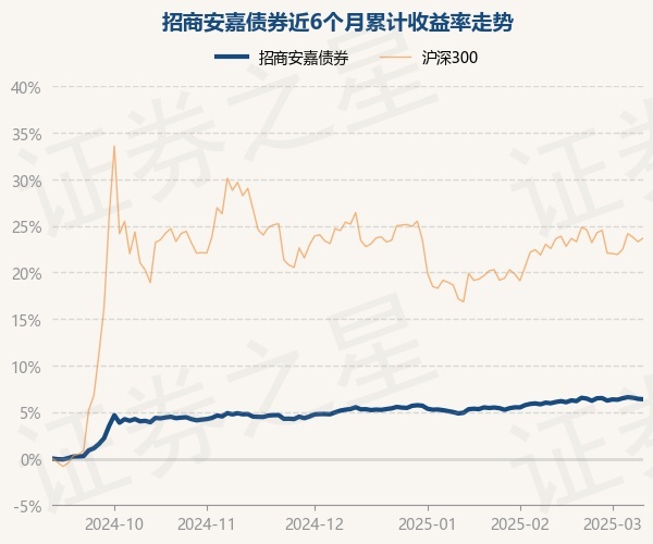 证券之星消息,3月11日,招商安嘉债券最新单位净值为1.0414元,累计净值为1.185元,较前一交易日下跌0.04%。历史数据显示该基金近1个月上涨0.51%,近3个月上涨1.0%,近6个月上涨6.37%,近1年上涨8.18%。该基金近6个月的累计收益率走势如下图: