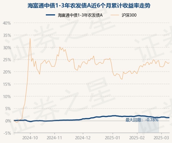 证券之星消息,3月11日,海富通中债1-3年农发债A最新单位净值为1.0657元,累计净值为1.1297元,较前一交易日上涨0.0%。历史数据显示该基金近1个月下跌0.78%,近3个月下跌0.01%,近6个月上涨1.09%,近1年上涨3.47%。该基金近6个月的累计收益率走势如下图: