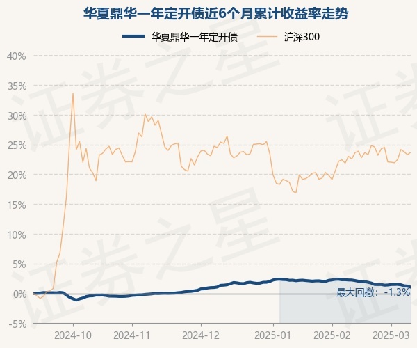 证券之星消息,3月11日,华夏鼎华一年定开债最新单位净值为1.0982元,累计净值为1.2063元,较前一交易日下跌0.17%。历史数据显示该基金近1个月下跌1.22%,近3个月下跌0.33%,近6个月上涨1.05%,近1年上涨4.61%。该基金近6个月的累计收益率走势如下图: