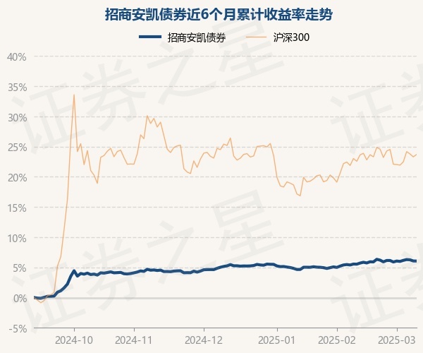 证券之星消息,3月11日,招商安凯债券最新单位净值为1.0413元,累计净值为1.139元,较前一交易日下跌0.01%。历史数据显示该基金近1个月上涨0.62%,近3个月上涨0.75%,近6个月上涨6.04%,近1年上涨8.08%。该基金近6个月的累计收益率走势如下图:
