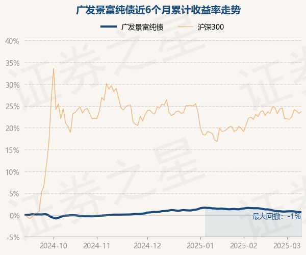 证券之星消息,3月11日,广发景富纯债最新单位净值为1.0377元,累计净值为1.1704元,较前一交易日上涨0.0%。历史数据显示该基金近1个月下跌0.96%,近3个月下跌0.31%,近6个月上涨0.58%,近1年上涨3.03%。该基金近6个月的累计收益率走势如下图: