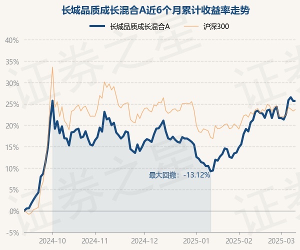 证券之星消息,3月11日,长城品质成长混合A最新单位净值为0.6399元,累计净值为0.6399元,较前一交易日上涨0.0%。历史数据显示该基金近1个月上涨6.74%,近3个月上涨5.37%,近6个月上涨26.54%,近1年上涨12.07%。该基金近6个月的累计收益率走势如下图: