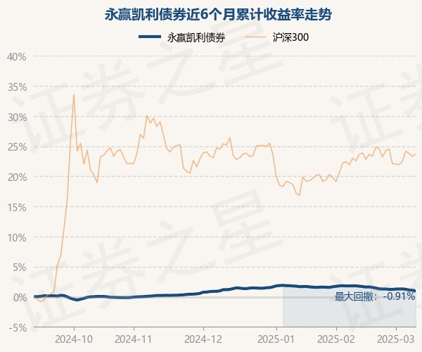 证券之星消息,3月11日,永赢凯利债券最新单位净值为1.0593元,累计净值为1.2154元,较前一交易日下跌0.11%。历史数据显示该基金近1个月下跌0.82%,近3个月下跌0.21%,近6个月上涨0.96%,近1年上涨3.17%。该基金近6个月的累计收益率走势如下图: