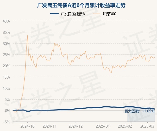 证券之星消息,3月11日,广发民玉纯债A最新单位净值为1.0507元,累计净值为1.1401元,较前一交易日下跌0.14%。历史数据显示该基金近1个月下跌0.98%,近3个月下跌0.39%,近6个月上涨0.62%,近1年上涨2.4%。该基金近6个月的累计收益率走势如下图: