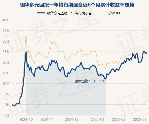 证券之星消息,3月11日,银华多元回报一年持有期混合最新单位净值为0.7482元,累计净值为0.7482元,较前一交易日上涨0.4%。历史数据显示该基金近1个月上涨4.42%,近3个月上涨4.94%,近6个月上涨24.51%,近1年上涨16.78%。该基金近6个月的累计收益率走势如下图:
