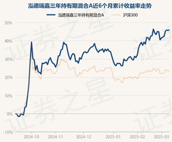 证券之星消息,3月11日,泓德瑞嘉三年持有期混合A最新单位净值为0.8679元,累计净值为0.8679元,较前一交易日上涨0.2%。历史数据显示该基金近1个月上涨6.14%,近3个月上涨6.53%,近6个月上涨45.94%,近1年上涨26.17%。该基金近6个月的累计收益率走势如下图: