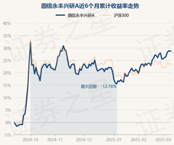 证券之星消息,3月11日,圆信永丰兴研A最新单位净值为1.2042元,累计净值为1.2042元,较前一交易日上涨0.0%。历史数据显示该基金近1个月上涨5.29%,近3个月上涨4.57%,近6个月上涨29.05%,近1年上涨18.95%。该基金近6个月的累计收益率走势如下图: