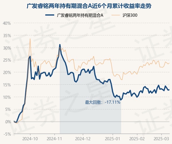 证券之星消息,3月11日,广发睿铭两年持有期混合A最新单位净值为0.9443元,累计净值为0.9443元,较前一交易日上涨0.1%。历史数据显示该基金近1个月上涨1.05%,近3个月下跌6.65%,近6个月上涨12.82%,近1年上涨6.28%。该基金近6个月的累计收益率走势如下图: