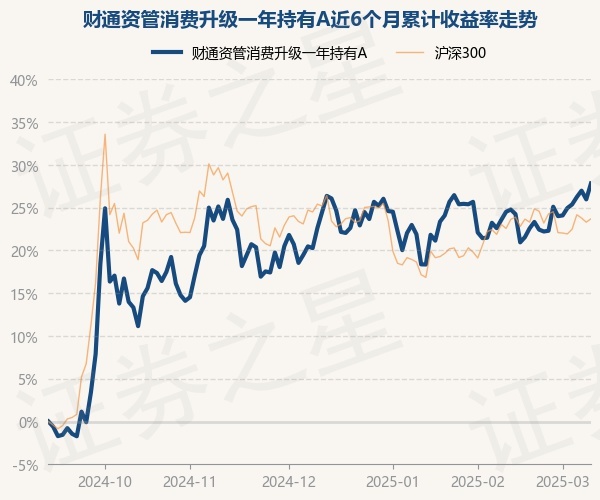 证券之星消息,3月11日,财通资管消费升级一年持有A最新单位净值为0.7557元,累计净值为0.7557元,较前一交易日上涨1.48%。历史数据显示该基金近1个月上涨4.26%,近3个月上涨2.69%,近6个月上涨27.82%,近1年上涨20.1%。该基金近6个月的累计收益率走势如下图: