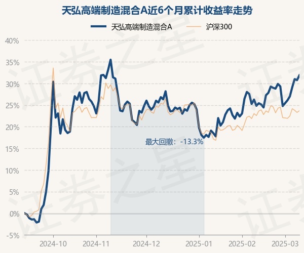 证券之星消息,3月11日,天弘高端制造混合A最新单位净值为0.8519元,累计净值为0.8519元,较前一交易日上涨0.85%。历史数据显示该基金近1个月上涨5.29%,近3个月上涨4.39%,近6个月上涨31.87%,近1年上涨24.46%。该基金近6个月的累计收益率走势如下图: