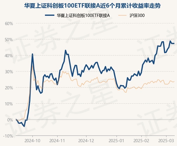 证券之星消息,3月11日,华夏上证科创板100ETF联接A最新单位净值为1.2572元,累计净值为1.2572元,较前一交易日上涨0.02%。历史数据显示该基金近1个月上涨8.47%,近3个月上涨8.79%,近6个月上涨47.35%,近1年上涨17.89%。该基金近6个月的累计收益率走势如下图: