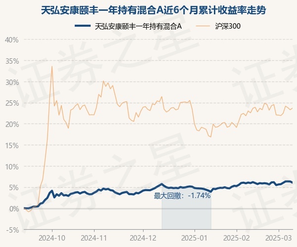 证券之星消息,3月11日,天弘安康颐丰一年持有混合A最新单位净值为1.0339元,累计净值为1.0339元,较前一交易日下跌0.26%。历史数据显示该基金近1个月上涨0.15%,近3个月上涨0.62%,近6个月上涨6.05%,近1年上涨5.59%。该基金近6个月的累计收益率走势如下图: