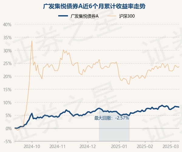 证券之星消息,3月11日,广发集悦债券A最新单位净值为1.0179元,累计净值为1.0179元,较前一交易日下跌0.09%。历史数据显示该基金近1个月上涨0.7%,近3个月上涨0.61%,近6个月上涨8.1%,近1年上涨4.31%。该基金近6个月的累计收益率走势如下图: