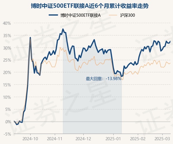 证券之星消息,3月11日,博时中证500ETF联接A最新单位净值为1.3689元,累计净值为1.3689元,较前一交易日上涨0.52%。历史数据显示该基金近1个月上涨3.04%,近3个月上涨0.3%,近6个月上涨32.47%,近1年上涨13.37%。该基金近6个月的累计收益率走势如下图: