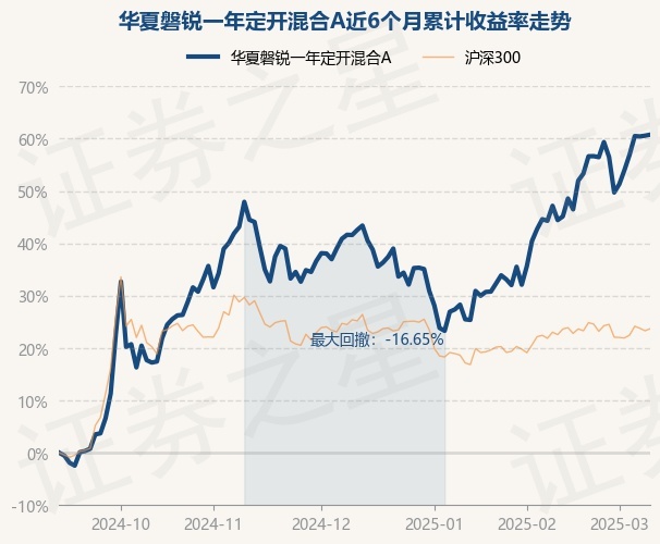 证券之星消息,3月11日,华夏磐锐一年定开混合A最新单位净值为1.4376元,累计净值为1.4376元,较前一交易日上涨0.12%。历史数据显示该基金近1个月上涨11.4%,近3个月上涨12.75%,近6个月上涨60.75%,近1年上涨36.84%。该基金近6个月的累计收益率走势如下图:
