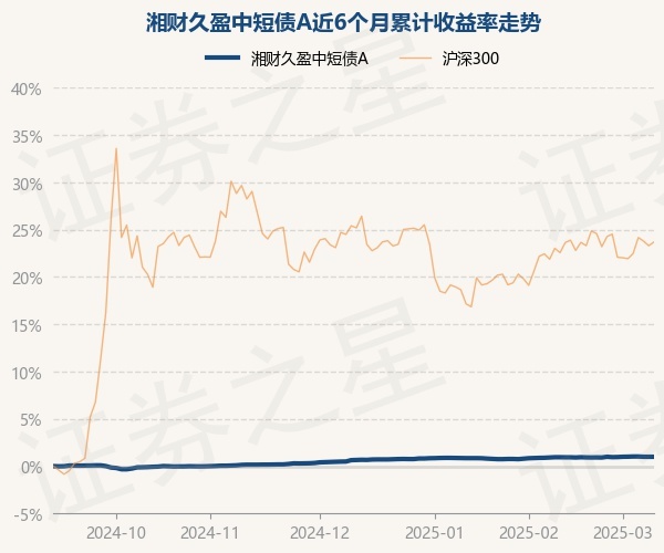 证券之星消息,3月11日,湘财久盈中短债A最新单位净值为1.047元,累计净值为1.1397元,较前一交易日上涨0.0%。历史数据显示该基金近1个月上涨0.06%,近3个月上涨0.32%,近6个月上涨0.97%,近1年上涨2.3%。该基金近6个月的累计收益率走势如下图: